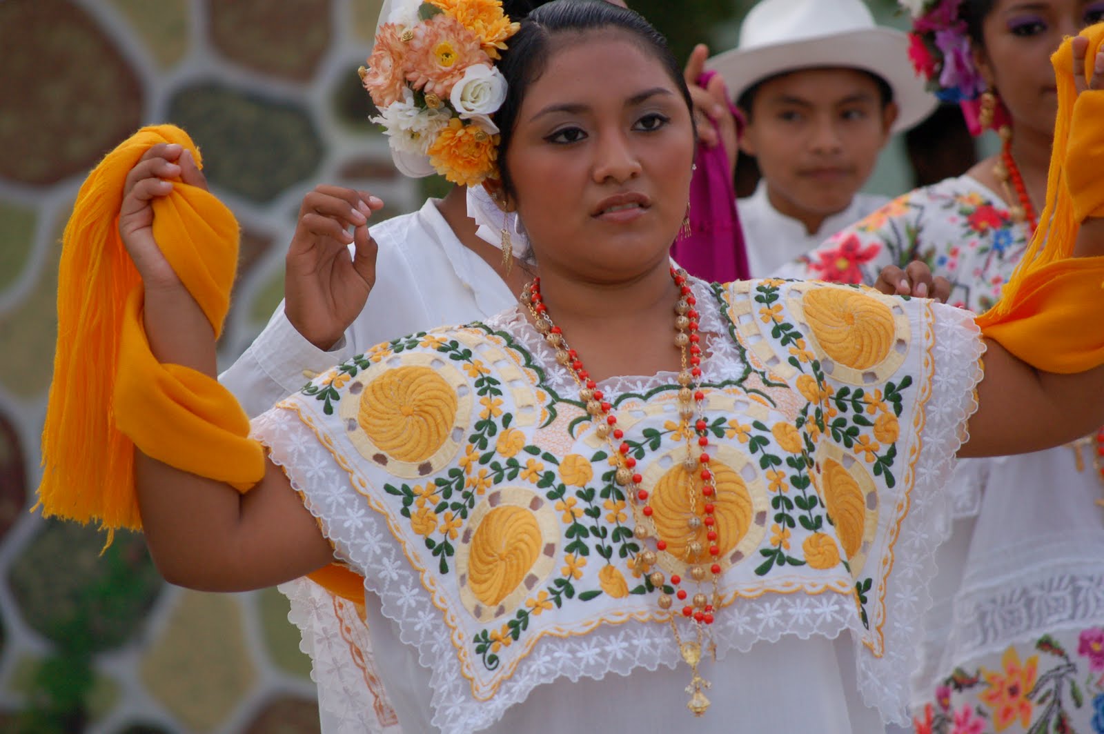 Our final stop was the end of the school year celebration starring many of the secondaria (middle school) students of Cholul, just outside of Merida. This is a grand fiesta celebrating the Mexican culture, and showcasing the dances and musical numbers learned by the students throughout the school year. Their costumes are handmade in gorgeous bright colors, and the talent of the students is clearly evident. Everyone noticed the gringos with the blonde children videotaping the event, so they were sure to publicly announce that a camera crew had travelled from Norteamericana for the fiesta, and expressed their gratitude.