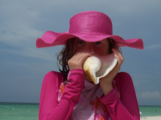 He learned right away how to use it as a horn, so spent the rest of the time being the beach lifeguard. He felt very important as he blew his conch shell from the edge of the water, waving each of us left or right, or out of the surf from time to time!