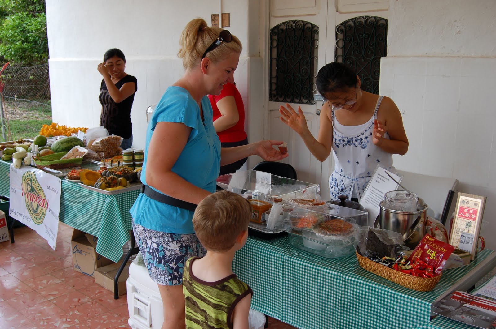 Sampled some tasty treats (even Korean food!) and brought several back with us, like fresh baked apple bread, cocoa muffins, caramelized onion bread with fresh goat cheese, and dulce de ciricote, along with the arugula for the evening's dinner.